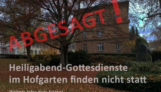 Liebe Gemeinde, liebe Freundinnen und Freunde,aufgrund der aktuellen Situation wurde heute gemeinsam mit den allen teilnehmenden Kirchengemeinde in einer Video-Konferenz entschieden, alle Freiluft-Gottesdienste an Heiligabend im Hofgarten abzusagen.Es wird eine […]