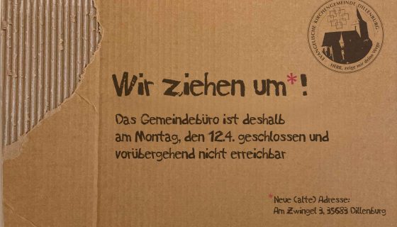Das Gemeindebüro der Kirchengemeinde Dillenburg zieht um! Am 12.4. ist es endlich soweit und wir brechen unsere Zelte in der Döngesstraße ab. Dank an die Eheleute Garth, in deren Villa […]