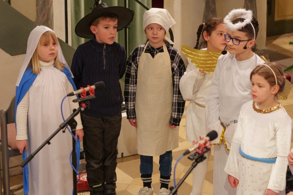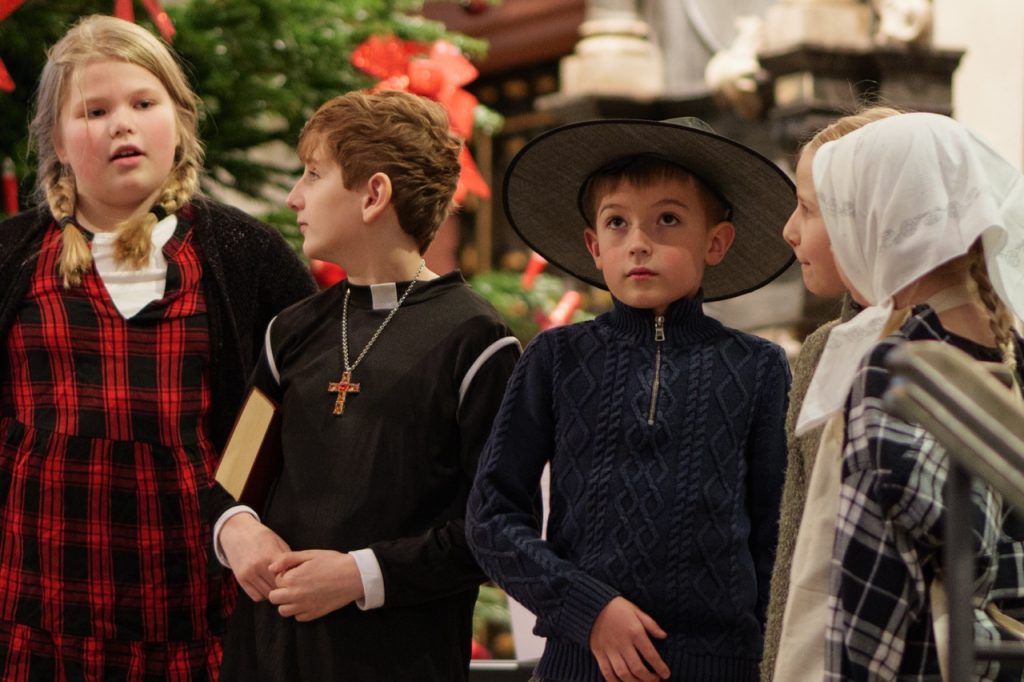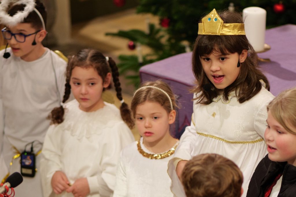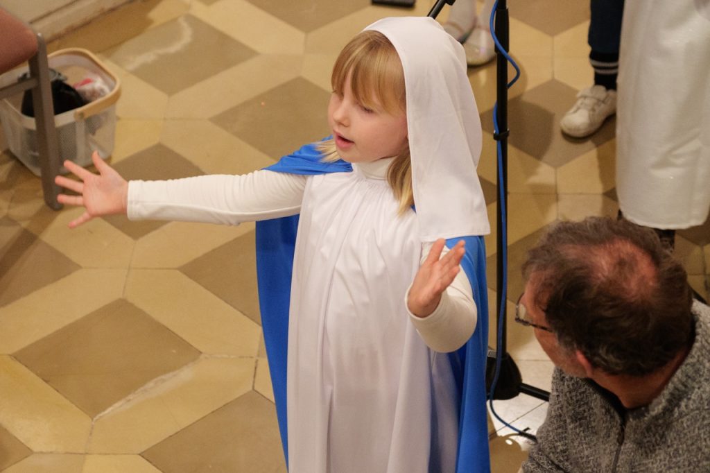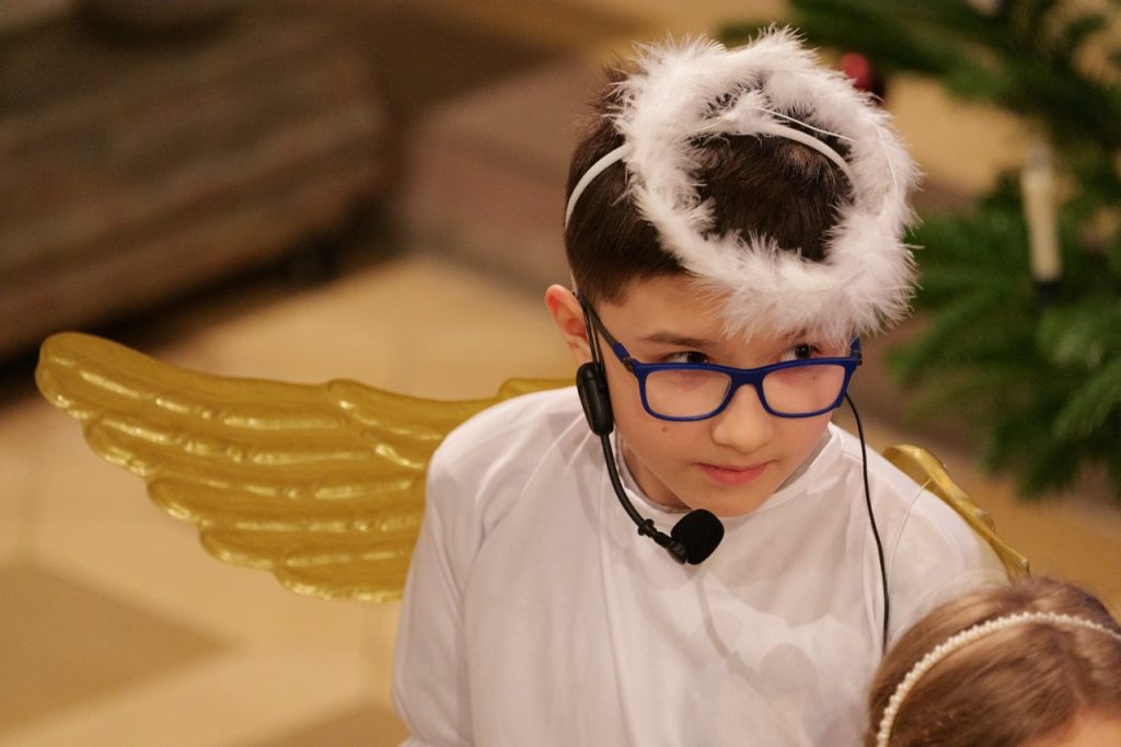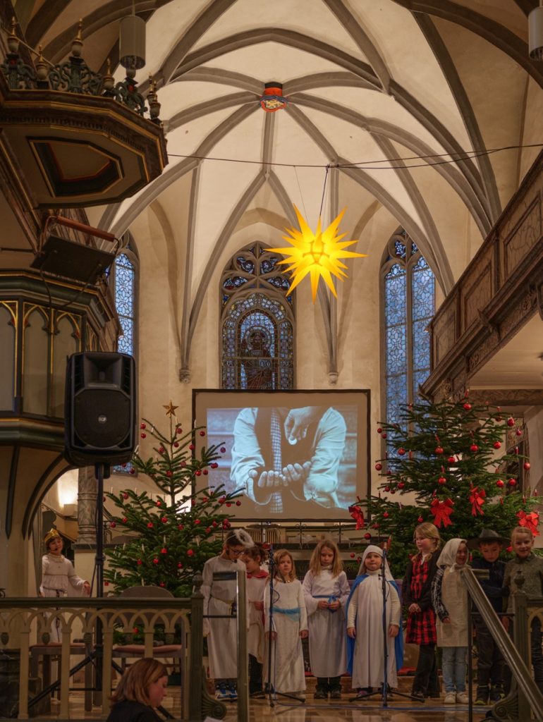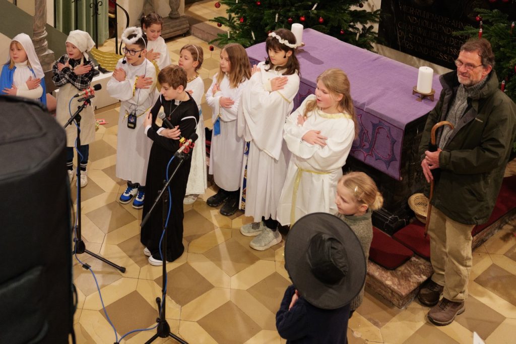 Mit dem Singspiel „Das himmlische Hilfswerk“ von Rainer Bohm (Musik) und Gabriele Timm (Text) hat die Kinderkantorei Dillenburg am 3. Advent vorweihnachtliche Stimmung in die Stadtkirche Dillenburg gezaubert. Die Geschichte um die Engel und Seraphim, die mit Hilfe von weltlicher Unterstützung – dem „Himmlischen Hilfswerk“ – die frohe Botschaft von der Geburt Jesu zu den Menschen bringen, hat das Publikum begeistert. Die Kinder bewiesen sowohl im chorischen als auch im solistischen Gesang, dass sie ihre Partien fleißig geübt haben und auch die Sprechtexte der Darsteller waren sicher und ausdrucksstark. Als besonderer Gast übernahm Wilfried Hahn drei Rollen im Singspiel, das musikalisch von Ulrich Kögel am E-Piano und von Ute Orth an der Querflöte begleitet wurde. Unter der Leitung von Petra Denker erlebten das Publikum eine unterhaltsame Geschichte und konnte sich auch beim Lied „Vom Himmel hoch, da komm ich her“ singend beteiligen. Ein langer Applaus war der schönste Dank an eine wunderbare Aufführung der Kinderkantorei Dillenburg!