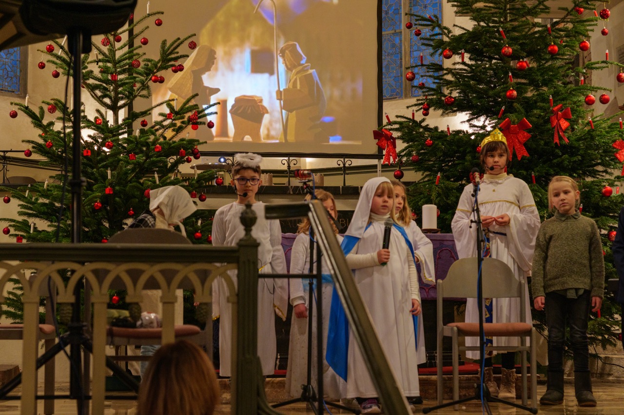 Mit dem Singspiel „Das himmlische Hilfswerk“ von Rainer Bohm (Musik) und Gabriele Timm (Text) hat die Kinderkantorei Dillenburg am 3. Advent vorweihnachtliche Stimmung in die Stadtkirche Dillenburg gezaubert. Die Geschichte um die Engel und Seraphim, die mit Hilfe von weltlicher Unterstützung – dem „Himmlischen Hilfswerk“ – die frohe Botschaft von der Geburt Jesu zu den Menschen bringen, hat das Publikum begeistert. Die Kinder bewiesen sowohl im chorischen als auch im solistischen Gesang, dass sie ihre Partien fleißig geübt haben und auch die Sprechtexte der Darsteller waren sicher und ausdrucksstark. Als besonderer Gast übernahm Wilfried Hahn drei Rollen im Singspiel, das musikalisch von Ulrich Kögel am E-Piano und von Ute Orth an der Querflöte begleitet wurde. Unter der Leitung von Petra Denker erlebten das Publikum eine unterhaltsame Geschichte und konnte sich auch beim Lied „Vom Himmel hoch, da komm ich her“ singend beteiligen. Ein langer Applaus war der schönste Dank an eine wunderbare Aufführung der Kinderkantorei Dillenburg!