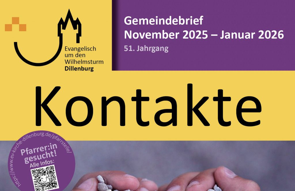 Unser Gemeindebrief „KONTAKTE“ hat eine 50-jährige Tradition. Er erscheint alle zwei bis drei Monate in farbiger Aufmachung. Termine, und Veranstaltungen, Grußworte und Beiträge aus unserem vielfältigen Gemeindeleben finden sich darin. Der gedruckte Gemeindebrief, trotz aller Digitalisierung, ist und bleibt ein wichtiges Bindeglied der Gemeinde.