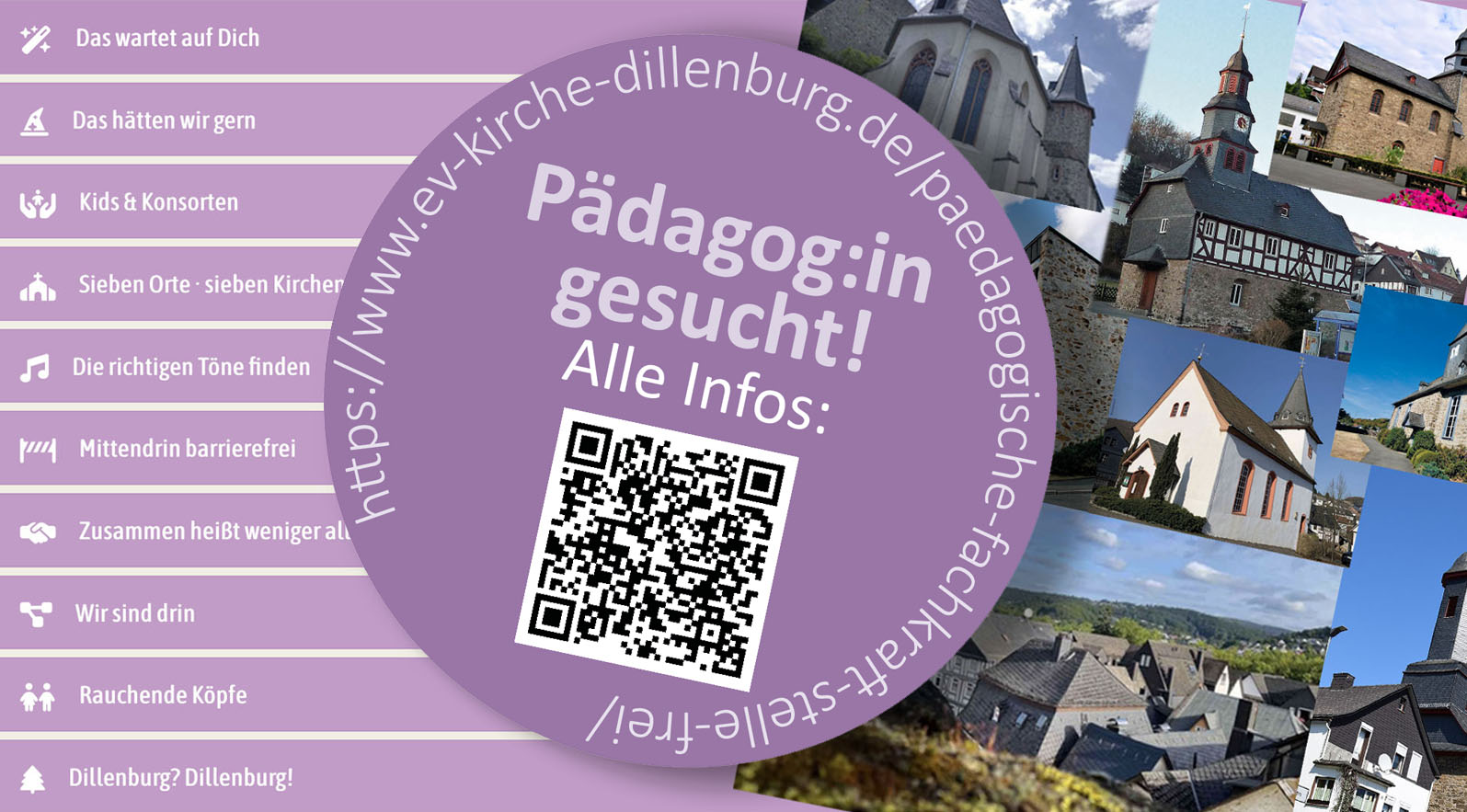 Viele Grüße aus Dillenburg! Wir suchen eine Gemeindepädagog:in für die Gesamtkirchengemeinde in Dillenburg*! Der nachfolgende Link führt Dich auf die Landingpage für diese Stelle. Dort findest Du mehr Infos – zu uns, zu Dillenburg und zur Gemeinde. Erfahre, was auf Dich wartet, was wir gerne hätten und warum es siebenschön ist bei uns zu arbeiten! … Wir laden Dich ganz herzlich ein, Dir ein Bild zu machen, sehr gerne auch persönlich.