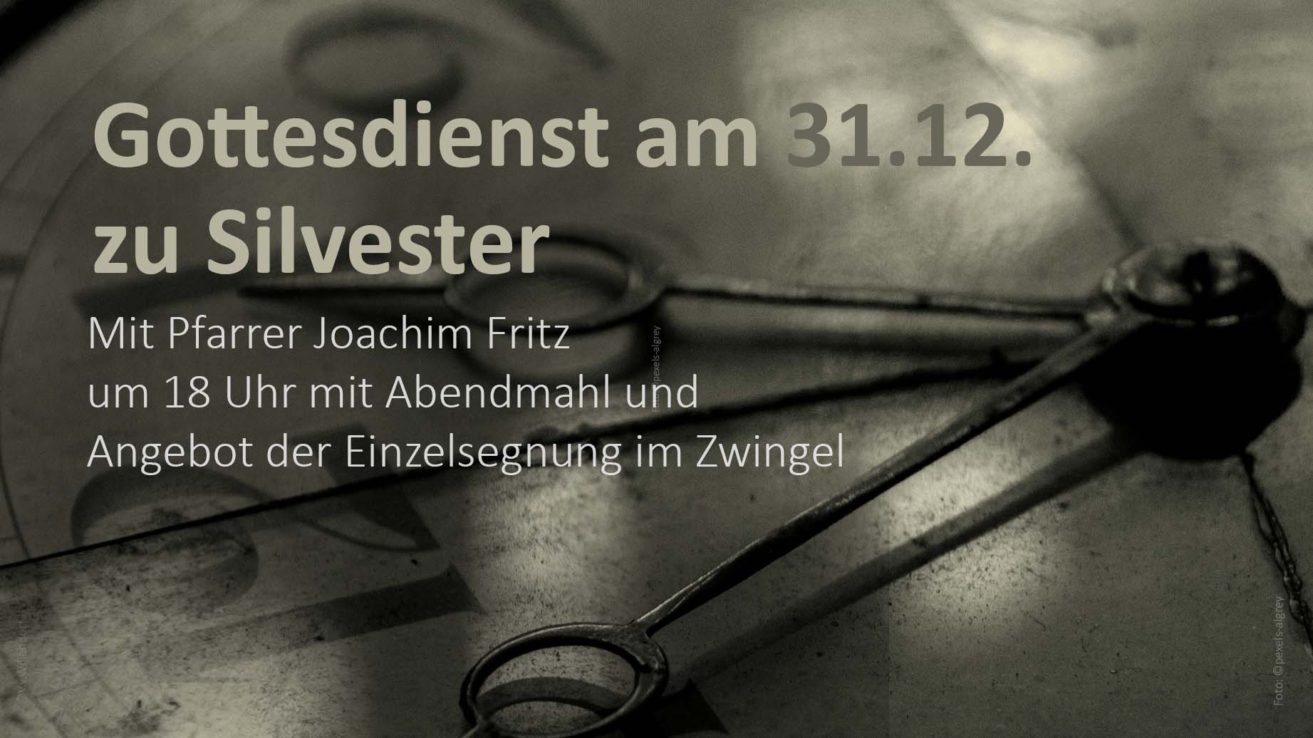 Dort sind Sie auch zum Abendmahl eingeladen. Im Anschluss besteht die Möglichkeit sich von Pfarrer Joachim Fritz ein persönliches Segenswort zusprechen zu lassen.
