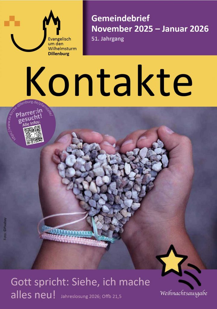 Die KONTAKTE für November, Dezember und Januar sind online und liegen bald auch analog in Ihrem Briefkasten oder zum Mitnehmen in der Kirche und im Gemeindehaus.