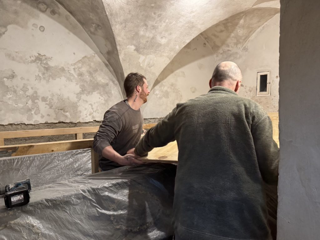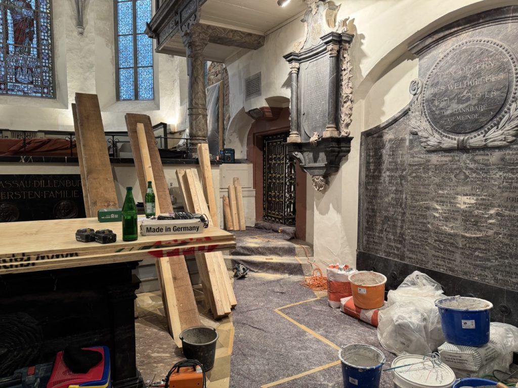 Ruhestörung in der Gruft … aber es geht nicht anders. Die vier Särge werden zumindest gut geschützt, während die Restaurierungsarbeiten vorangehen.