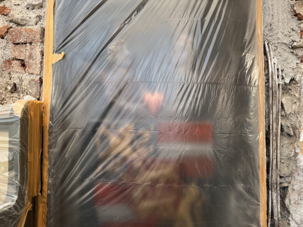 Auch gleich nebenan ist der Herzstein gut verpackt und die durchfeuchtete Wand abgetragen.